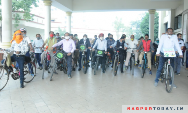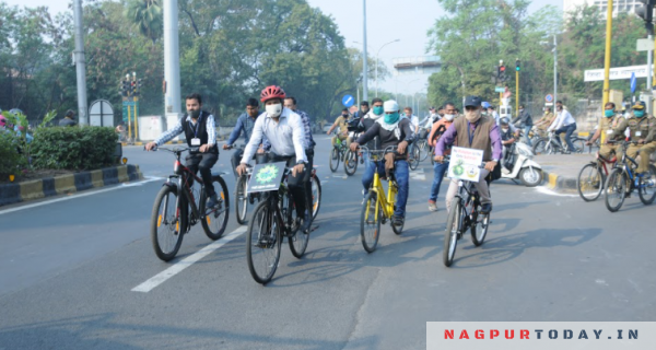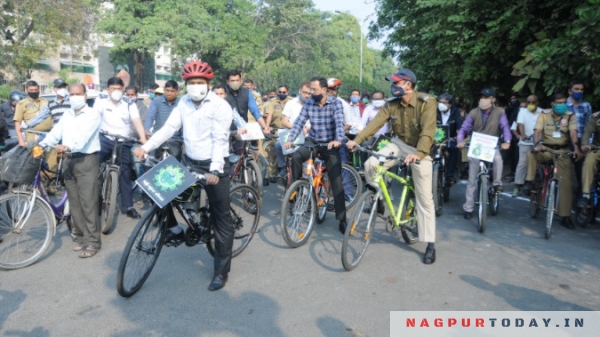 नागपूर महानगरपालिकेचे आयुक्त राधाकृष्णन बी. यांनी आज त्यांच्या ‘तपस्या’ या शासकीय निवासस्थानापासून मनपा मुख्यालयापर्यंतचा प्रवास सायकलने केला. मनपा मुख्यालयातील सर्व अधिकारी, कर्मचारी तसेच नागपूर स्मार्ट ॲण्ड सस्टेनेबल सिटी डेव्हलपमेंट कॉर्पोरेशन लिमिटेडचे अधिकारी, कर्मचारी आकाशवाणी चौकात एकत्र आले. तेथून सर्वांनी मनपा मुख्यालयापर्यंत सायकलने प्रवास केला. अतिरिक्त आयुक्त राम जोशी यांनीही स्वत:च्या निवासस्थानापासून कार्यालयापर्यंतचा नऊ कि.मी.चा प्रवास सायकलने केला.