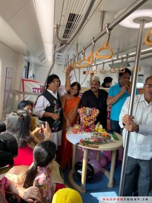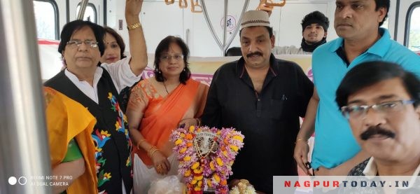 Nagpur – It is said that Shri Gajanan Maharaj used to reach from one place with wind’s speed. ‘Aapli Metro’ also gave the same experience to the attendees on the occasion of the ‘Muhurta’ of the play ‘Shegavicha Mahayogi’ based on Shri Gajanan Maharaj. Shri Nataraja was worshiped at the hands of dignitaries in the running metro.